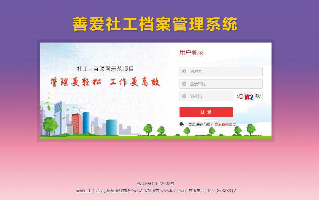 善爱社工档案管理系统于2018年1月26日成功上线并在社工圈引起了不小的震动,社工同仁们来电或者发来信息一致表示愿意购买和使用。 善爱社工档案管理系统是善爱社工(武汉)信息服务有限..