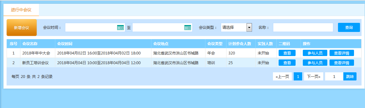 1、新增功能——会议管理